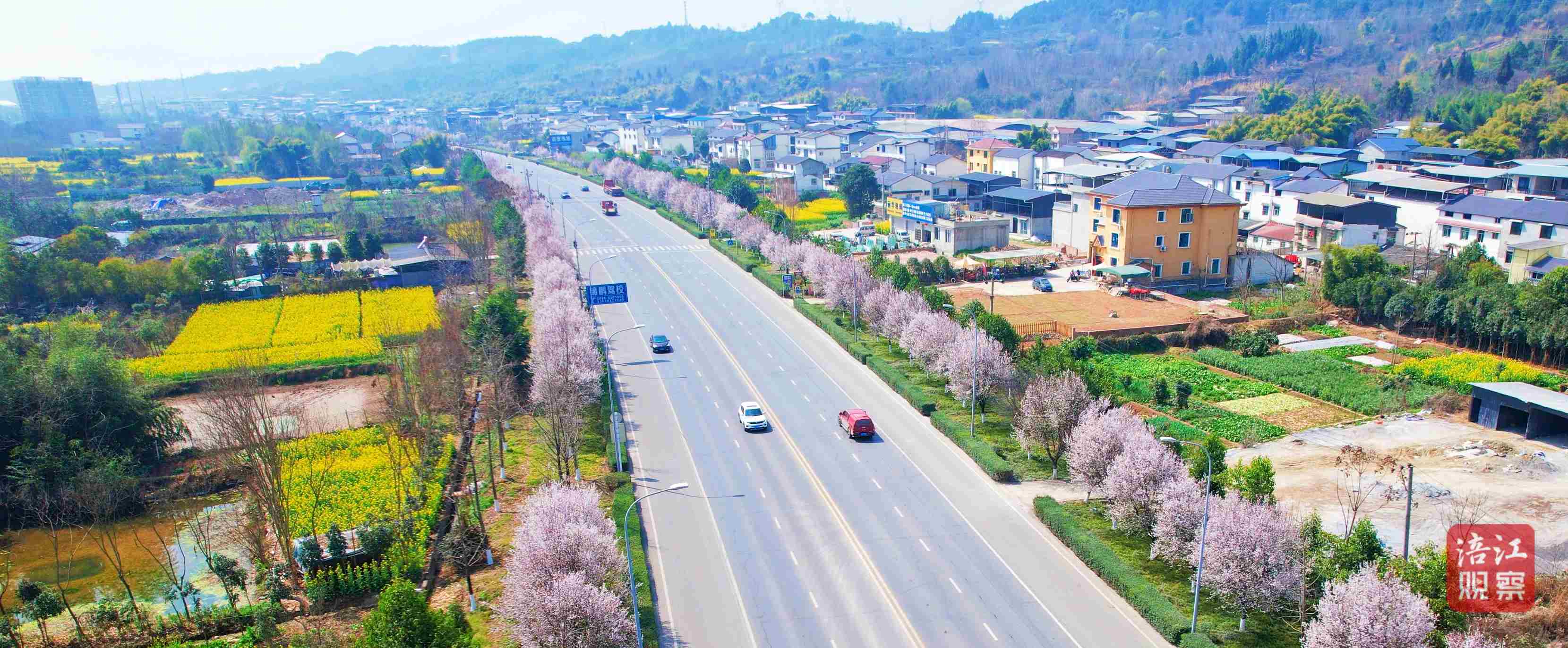 在江油市西環(huán)線道路兩旁,紅葉李含苞怒放,遠(yuǎn)望似兩抹新落的春雪。樹下落英繽紛,讓路人都不忍下腳。