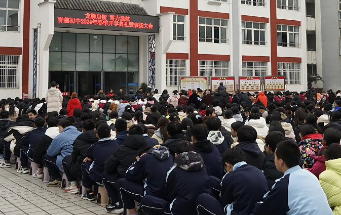 近日,江油市青蓮初中舉行了以“龍騰啟新,蓄力遠(yuǎn)航”為主題的2024年春季學(xué)期開學(xué)典禮暨表?yè)P(yáng)大會(huì)。