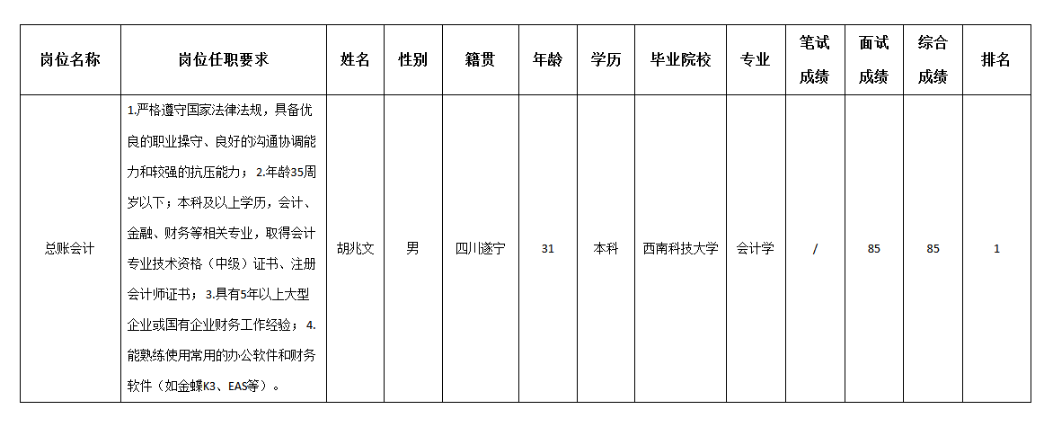 根據(jù)四川九州視訊科技有限責任公司發(fā)布的招聘公告及招聘相關規(guī)定,經(jīng)筆試、面試等程序,現(xiàn)將筆試(面試)成績予以公示。