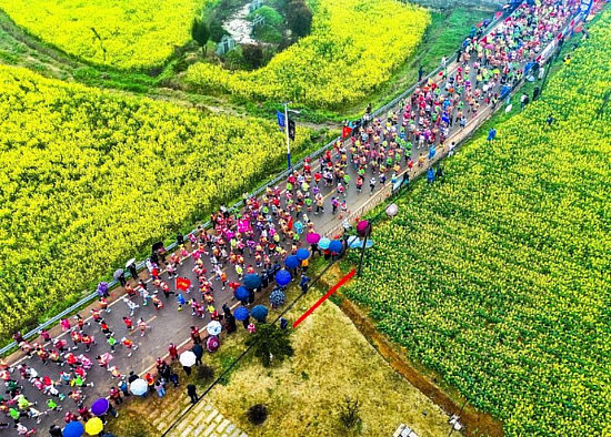 3月17日,2024瑞昌第四屆鄉(xiāng)村花海馬拉松在江西省瑞昌市武蛟鄉(xiāng)開跑,此次比賽設(shè)有半程馬拉松和歡樂迷你馬拉松,共有來自全國各地的近5000名選手在金色的油菜花海中暢跑。