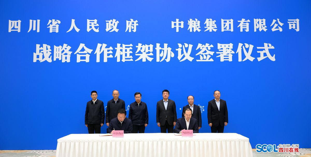 簽署儀式上,省委常委、常務副省長董衛(wèi)民與中糧集團副總經(jīng)理徐光洪分別代表雙方簽署協(xié)議。根據(jù)協(xié)議,雙方將在已有良好合作基礎上,全面深化在食品飲料、倉儲物流、會展博覽、地產(chǎn)金融等多個領(lǐng)域的戰(zhàn)略合作,共同維護糧食安全,保障食品安全,助力四川精準發(fā)力建設現(xiàn)代化產(chǎn)業(yè)體系、全面發(fā)力推進鄉(xiāng)村振興,助推四川經(jīng)濟社會高質(zhì)量發(fā)展。