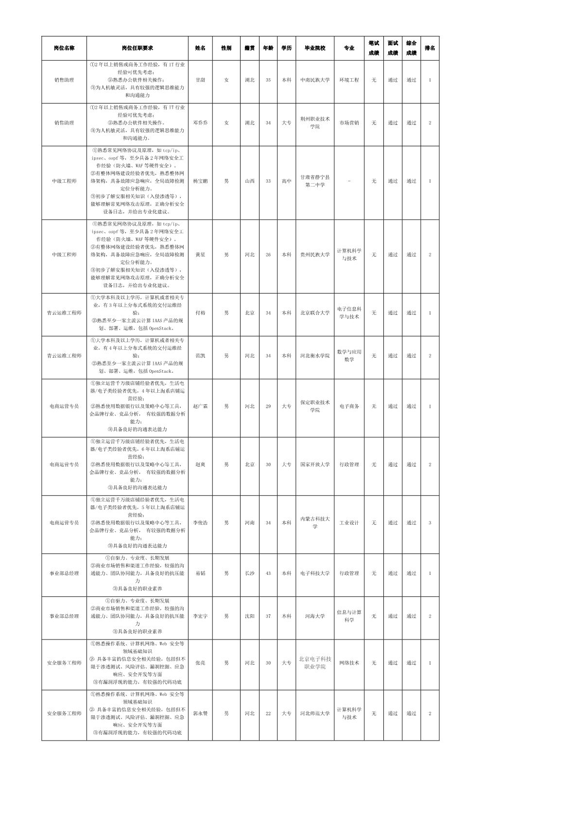 根據(jù)四川長虹佳華信息產(chǎn)品有限責(zé)任公司發(fā)布的招聘公告及招聘相關(guān)規(guī)定,經(jīng)筆試、面試等程序,現(xiàn)將筆試(面試)成績予以公示。
