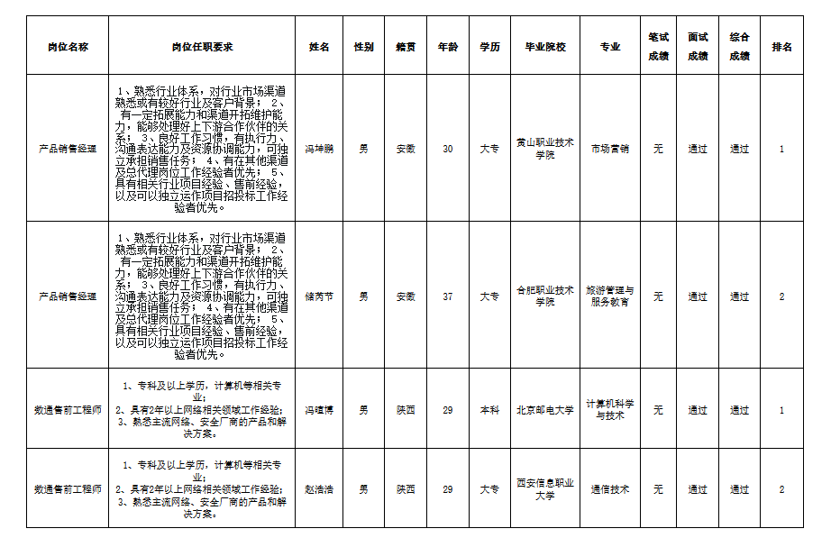 根據(jù)四川長虹佳華信息產(chǎn)品有限責任公司發(fā)布的招聘公告及招聘相關(guān)規(guī)定,經(jīng)筆試、面試等程序,現(xiàn)將筆試(面試)成績予以公示。