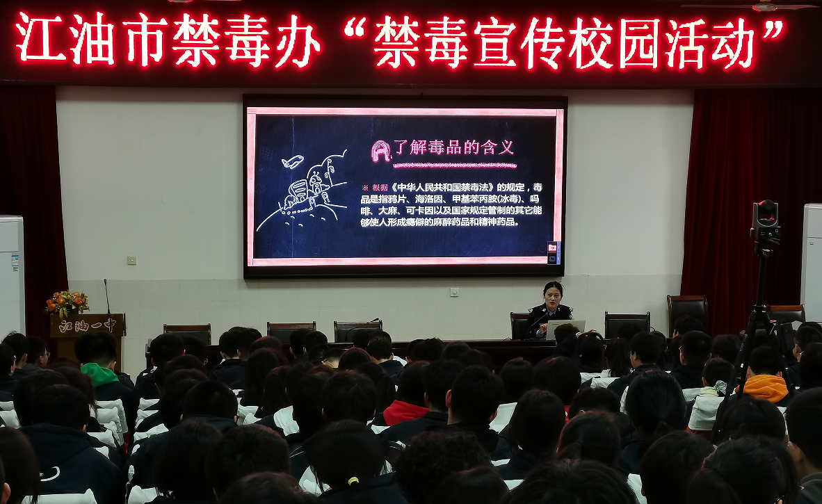 為了進一步筑牢學生禁毒思想防線,增強青少年識毒、防毒、拒毒的意識和能力,樹立正確的價值觀和人生觀。3月18日,江油市禁毒辦何警官前往江油一中開展了以“禁毒宣傳進校園 助力成長正能量