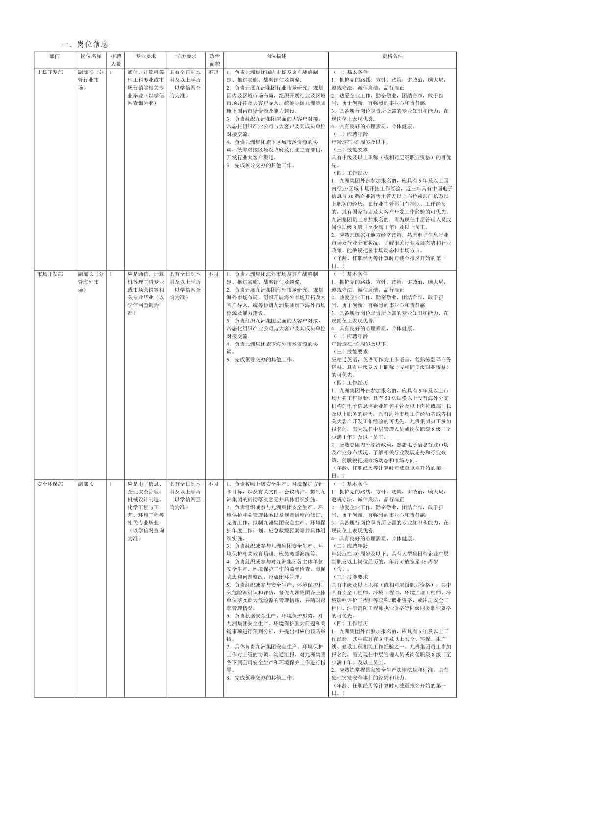 ?。ㄒ唬?yīng)聘者應(yīng)于報(bào)名時(shí)間內(nèi)將《四川九州投資控股集團(tuán)有限公司社會化選聘中層管理人員報(bào)名表》(詳見附件)及其他應(yīng)提供的報(bào)名資料,以圖片或PDF文件格式打包壓縮后請用“報(bào)名職位名稱+本人姓名”命名,發(fā)送至指定郵箱15196261795@163.com,聯(lián)系人張女士(組織人事部),聯(lián)系電話:0816-2468312。 其他應(yīng)提供的報(bào)名資料包括:本人身份證、學(xué)歷學(xué)位證書(含學(xué)信網(wǎng)證明)、專業(yè)技術(shù)資格證書、職(執(zhí))業(yè)資格證書、工作經(jīng)歷證明(任職文件、勞動(dòng)合同等)、近年來主要工作業(yè)績(成果)、獲獎(jiǎng)證書等相關(guān)材料。(二)凡有下列情形之一的,不得報(bào)名1.因犯罪受過刑事處罰的。2.被開除中國共產(chǎn)黨黨籍的。3.被開除公職的。4.被依法列為失信聯(lián)合懲戒對象的。5.受到誡勉、組織處理或者黨紀(jì)政務(wù)處分等影響期未滿或者期滿影響使用的。6.涉嫌違紀(jì)違法正在接受有關(guān)機(jī)關(guān)審查尚未作出結(jié)論的。7.正在接受審計(jì)機(jī)關(guān)審計(jì)的。8.法律法規(guī)規(guī)定的其他情形。