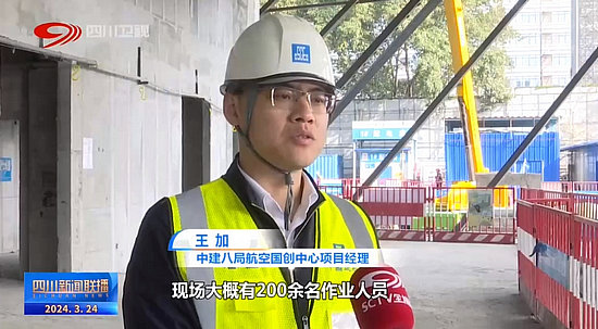 中建八局航空國創(chuàng)中心項目經理 王加:現(xiàn)場大概有200余名作業(yè)人員,每天差不多有30余輛材料運輸車、50余臺直臂車剪刀車等各類機械配合現(xiàn)場作業(yè),確?,F(xiàn)場施工高效率推進。項目以建設國家高端航空裝備技術中心為引領,未來將入駐更多的研發(fā)型、成長型企業(yè)總部基地,打造中國“航空科技”研發(fā)設計高地。