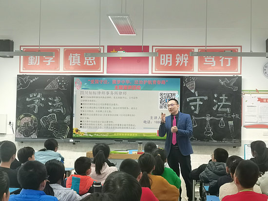 綿陽(yáng)新聞網(wǎng)訊 為了進(jìn)一步提升未成年人法治觀念和自我保護(hù)意識(shí),護(hù)航未成年人平安健康成長(zhǎng),3月15日下午,四川知標(biāo)律師事務(wù)所何瑞律師深入富樂二小六年級(jí)三班開展了以“愛國(guó)守法,圓夢(mèng)中華,法治護(hù)航青春路“為主題的普法講座。
