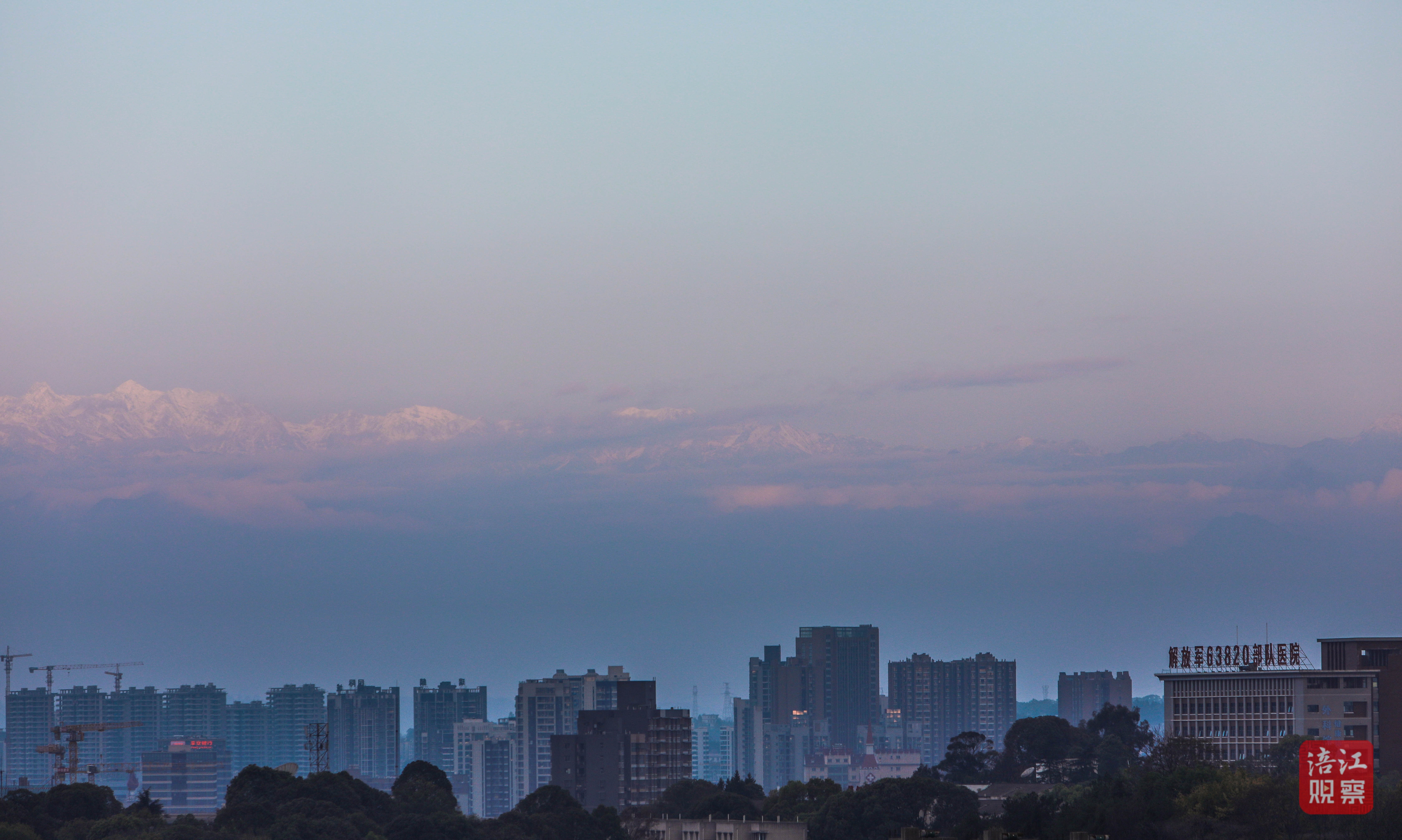 清晨,超高的能見(jiàn)度,讓綿陽(yáng)人有機(jī)會(huì)一睹“窗含西嶺千秋雪”的壯麗風(fēng)光。