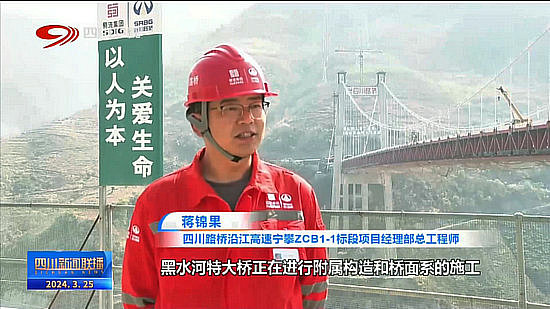 四川路橋沿江高速寧攀ZCB1-1標(biāo)段項目經(jīng)理部總工程師 蔣錦果:黑水河特大橋正在進(jìn)行附屬構(gòu)造和橋面系的施工。接下來,寧攀1標(biāo)將全力向2024年6月30日的通車目標(biāo)沖刺!沿江高速建成后,將有效提高成昆交通運輸大通道的運輸能力,與金沙江航道、G85銀昆高速形成綜合立體交通運輸體系。