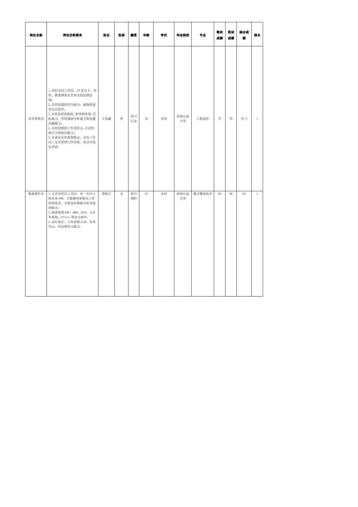 根據(jù)長虹電源公司發(fā)布的招聘公告及招聘相關規(guī)定,經(jīng)筆試、面試等程序,現(xiàn)將筆試(面試)成績予以公示。