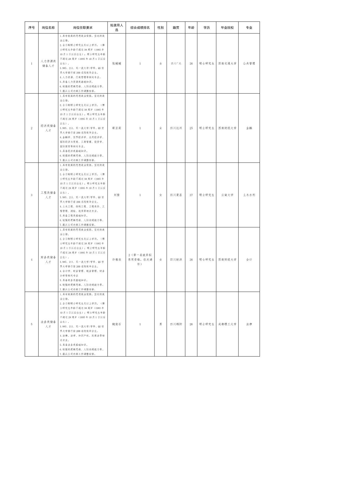 根據(jù)集團(tuán)2023年秋季“獵才行動”招聘公告及招聘相關(guān)規(guī)定,經(jīng)筆試、面試、考察、體檢等程序,擬錄用張媛媛等五名同志到科發(fā)集團(tuán)工作,現(xiàn)予以公示,具體情況如下: