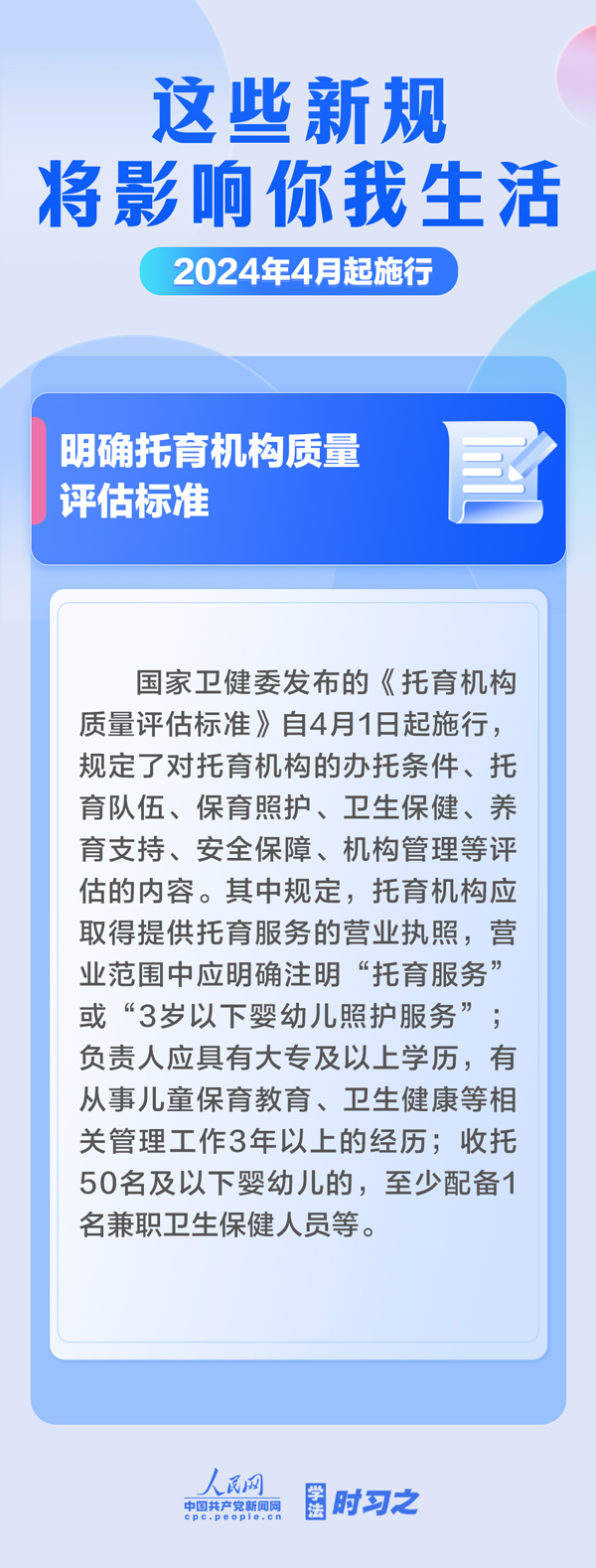加強(qiáng)中央儲備棉管理;明確托育機(jī)構(gòu)質(zhì)量評估標(biāo)準(zhǔn);規(guī)范可再生能源電量收購……4月起,這些新規(guī)施行,將影響你我生活。