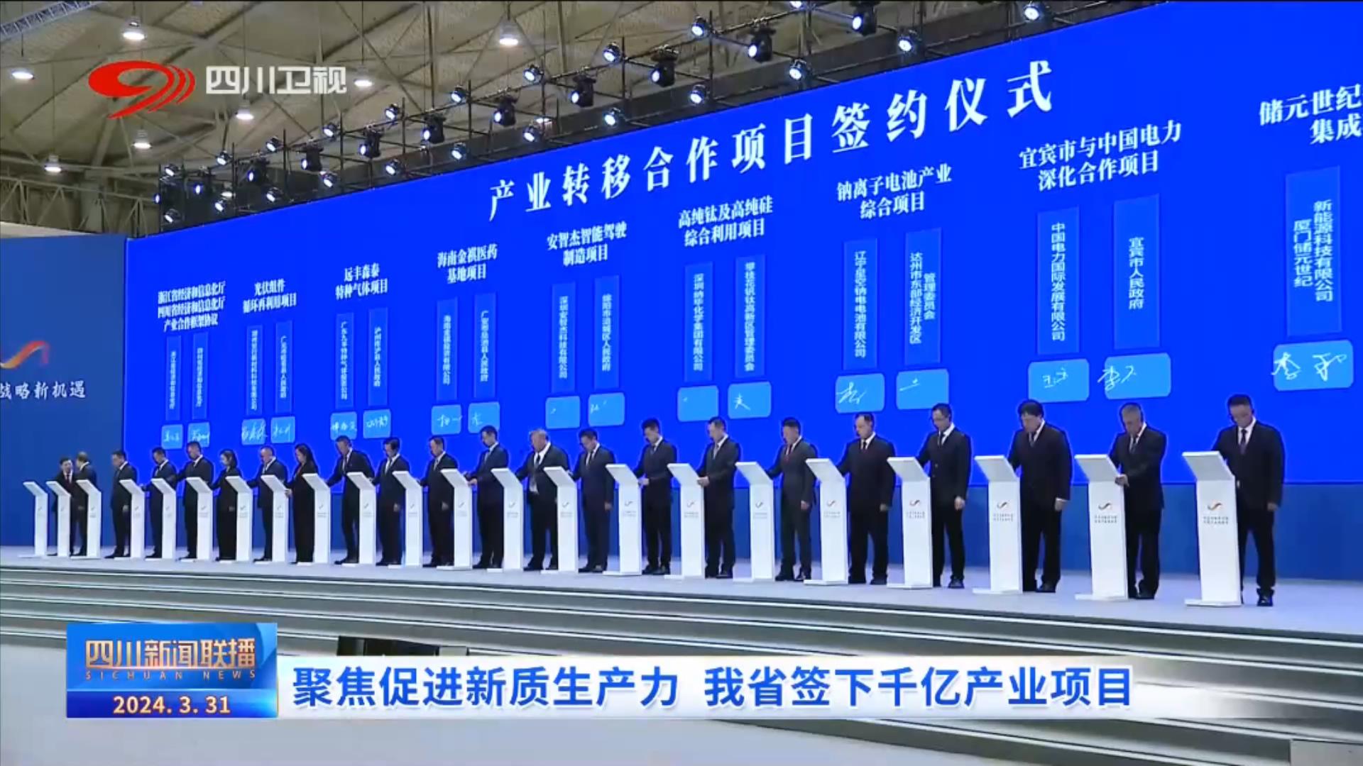 開幕式現(xiàn)場,共簽約項(xiàng)目22個,協(xié)議投資1048億元,涵蓋電子信息、裝備制造、食品輕紡等四川六大優(yōu)勢產(chǎn)業(yè)。對接活動上,一批代表四川未來產(chǎn)業(yè)發(fā)展方向、具有新質(zhì)生產(chǎn)力特征的重點(diǎn)項(xiàng)目也集中簽約,創(chuàng)新型、引領(lǐng)型、高新技術(shù)型項(xiàng)目占總項(xiàng)目的60%以上。
