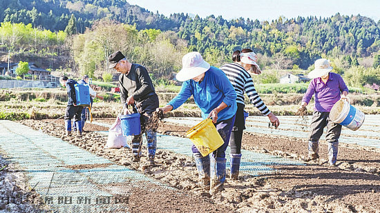 在石河堰村,空氣夾雜著新鮮的泥土氣息撲面而來(lái),村民們正在培育旱秧苗,他們嫻熟地播撒下稻種,澆水、覆膜,有條不紊地進(jìn)行每一道工序,全力以赴為即將到來(lái)的水稻插秧提供優(yōu)質(zhì)秧苗。