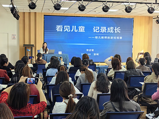 綿陽(yáng)新聞網(wǎng)訊 3月29日,由安州區(qū)教育研究院、教師進(jìn)修學(xué)校主辦,安州區(qū)調(diào)元路幼兒園承辦,教育部“雙名計(jì)劃”高翔名園長(zhǎng)工作室陽(yáng)春工作站協(xié)辦的2024年綿陽(yáng)市安州區(qū)學(xué)前教育“幼兒游戲行為觀察與記錄能力提升培訓(xùn)”活動(dòng)在安州區(qū)調(diào)元路幼兒園如期舉行。本次培訓(xùn)活動(dòng)特邀綿陽(yáng)師范學(xué)院副教授、學(xué)前教育專(zhuān)業(yè)負(fù)責(zé)人華正宏作《看見(jiàn)兒童 記錄成長(zhǎng)》專(zhuān)題講座,安州區(qū)幼兒園骨干教師共140余人參會(huì),活動(dòng)由安州區(qū)教育研究室幼教教研員劉松梅全程主持。