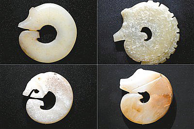 河南安陽(yáng)殷墟博物館新館內(nèi)展出的龍形玉玦。新華社記者 李 安攝