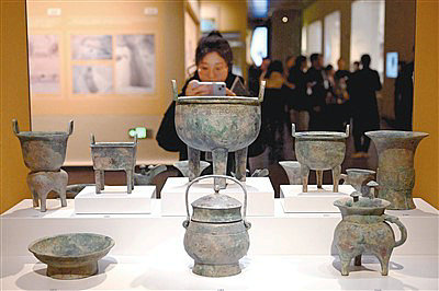參觀者在河南安陽(yáng)殷墟博物館新館內(nèi)拍攝展品。新華社記者 李 安攝