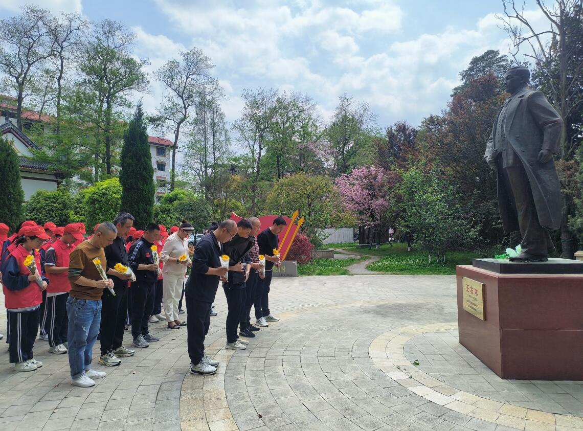全體黨員、團(tuán)員向四川傳播馬克思主義的宣傳者和組織者,四川早期黨、團(tuán)組織的創(chuàng)始人之一王右木默哀后,敬獻(xiàn)了黃菊花,表達(dá)對先烈的追思和緬懷。