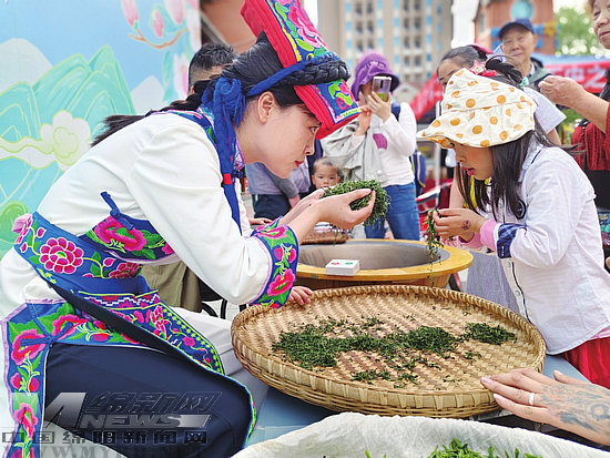 在工作人員的指導(dǎo)下,市民王麗娟現(xiàn)場體驗了一把炒茶。她告訴記者,清明是制茶、品茶的好時節(jié),這樣的體驗很新奇。