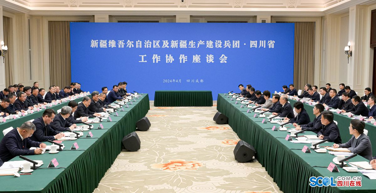 4月7日,新疆黨政代表團(tuán)來川考察。當(dāng)日下午,新疆維吾爾自治區(qū)及新疆生產(chǎn)建設(shè)兵團(tuán)·四川省工作協(xié)作座談會(huì)在成都舉行。新疆維吾爾自治區(qū)黨委書記、新疆生產(chǎn)建設(shè)兵團(tuán)黨委第一書記、第一政委馬興瑞出席會(huì)議并講話,四川省委書記、省人大常委會(huì)主任王曉暉主持會(huì)議并講話。自治區(qū)黨委副書記、自治區(qū)主席艾爾肯·吐尼亞孜,自治區(qū)黨委副書記、兵團(tuán)政委李邑飛,四川省委副書記、省長黃強(qiáng)分別介紹有關(guān)情況。四川省政協(xié)主席田向利,省委副書記、成都市委書記施小琳出席。