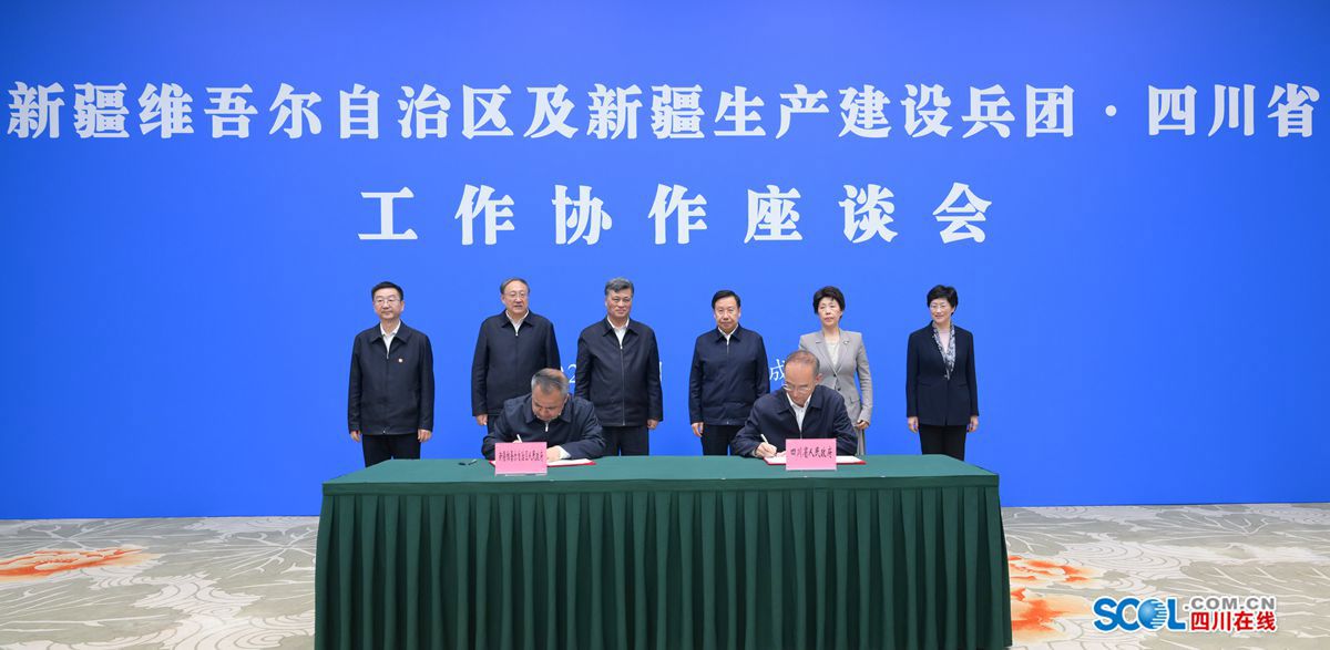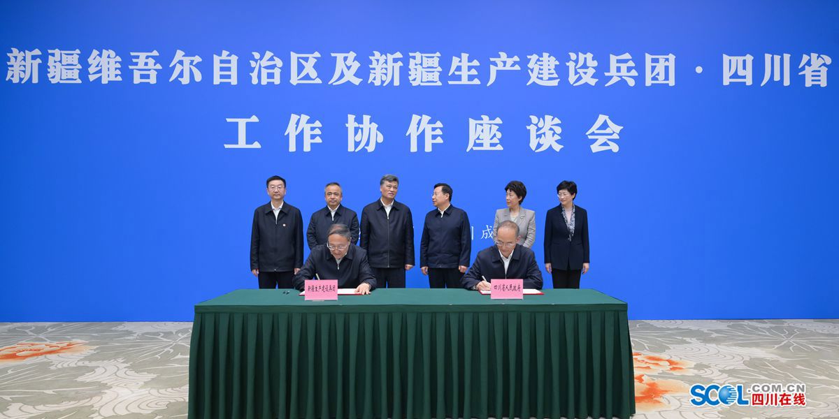 座談會(huì)上,在兩省區(qū)領(lǐng)導(dǎo)見證下,雙方簽署《新疆維吾爾自治區(qū)人民政府四川省人民政府戰(zhàn)略合作框架協(xié)議》《新疆生產(chǎn)建設(shè)兵團(tuán)四川省人民政府戰(zhàn)略合作框架協(xié)議》。