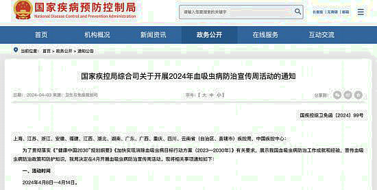 《“健康中國2030”規(guī)劃綱要》提出“到2030年全國所有流行縣達到消除血吸蟲病標(biāo)準”。國家疾控局發(fā)布的關(guān)于開展2024年血吸蟲病防治宣傳周活動的通知明確,要加大重點地區(qū)、重點人群的宣傳力度,提高公眾對血防知識的認知和防護意識,共同落實綜合防治措施。