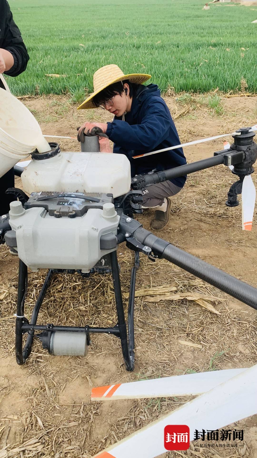 “當時在國家政策支持下,父母承包了3000畝土地,當時我回家的時候正趕上給小麥打農藥。”于是,舒星宇背上了手動打藥機,和父母一起給小麥打藥。