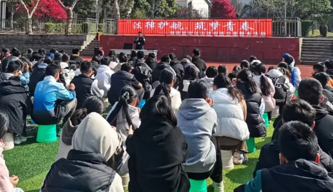 為了進一步增強學(xué)校師生的安全意識,杜絕校園欺凌事件發(fā)生,牢固樹立法治觀念,3月28日上午9時許,四川省綿陽市監(jiān)獄委員會指派獄警張科長帶領(lǐng)“深藍志愿者”警官到吳家中學(xué)開展了以“法律護航、筑夢青春”為主題的法治專題教育活動。