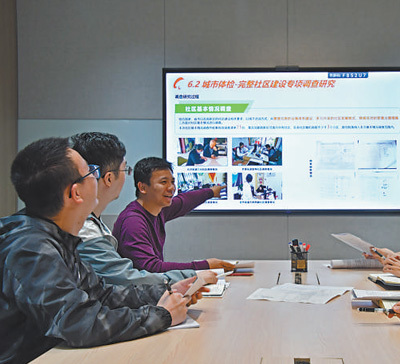 四川省建筑設(shè)計(jì)研究院有限公司城市體檢團(tuán)隊(duì)討論分析體檢情況。人民日?qǐng)?bào)記者 王永戰(zhàn)攝