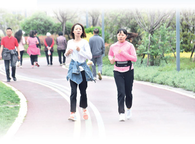 成都市民在青羊區(qū)清水河綠道晨跑。人民日?qǐng)?bào)記者 王永戰(zhàn)攝