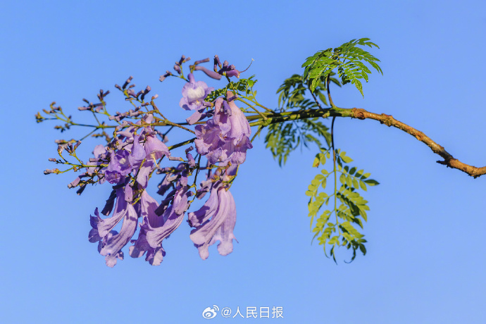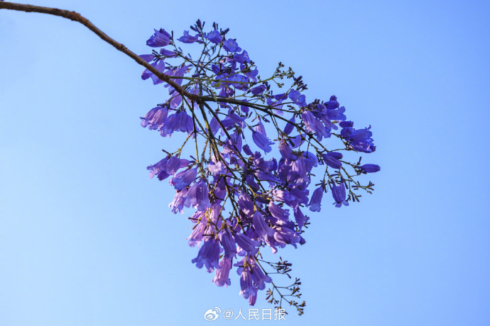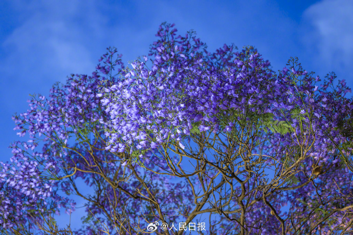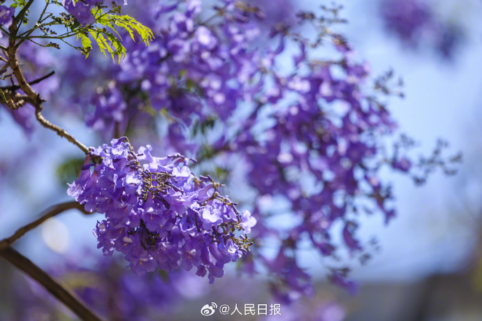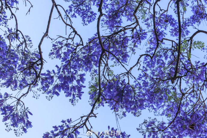 近日,云南昆明教場中路的藍花楹開放,城市籠罩在紫色花海中,夢幻十足。