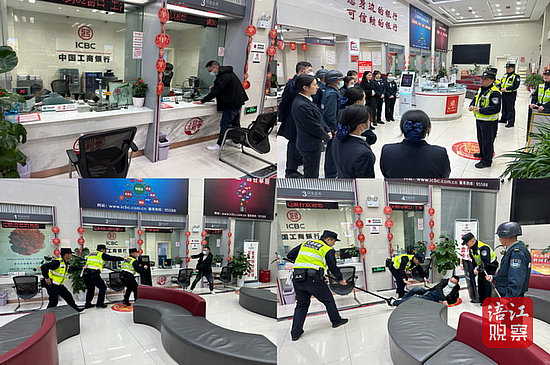 演練中,員工針對“歹徒”持刀搶劫、挾持人質(zhì)等情況,進(jìn)行了緊急處置。參加演練的員工沉著冷靜,避免“歹徒”實(shí)施過激行為,并伺機(jī)報(bào)警。保安掩護(hù)現(xiàn)場員工、客戶有序撤離至安全區(qū)域,巡特警趕到后將“歹徒”制服。