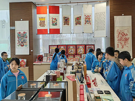 3月10日,河北省衡水市英才學(xué)校學(xué)生在衡水博物館研學(xué)過程中參觀文創(chuàng)展區(qū)。新華社發(fā)