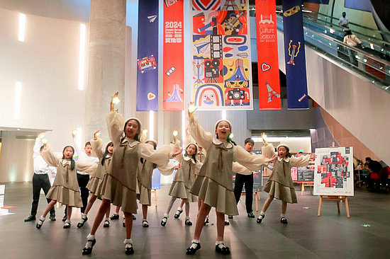 4月17日,在位于成都市的“中國—歐洲中心”云端天府音樂廳外,成都蒙彼利埃小學的學生們在演唱法語歌。新華社發(fā)(成都市人民政府外事辦公室供圖)