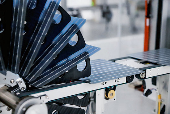 通威太陽(yáng)能智能制造生產(chǎn)線上的太陽(yáng)能電池片。受訪者供圖