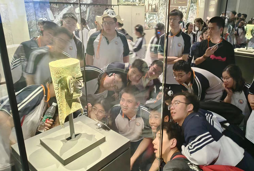 文明的魅力在于追尋,遙觀華夏,通聞天地,領(lǐng)略四方。歷代追尋,“三星堆”的神秘依然不減。同學(xué)們心懷期待,帶著滿滿的疑問和濃濃的求知欲走進(jìn)三星堆,開啟一場(chǎng)與文物、同古人的對(duì)話之旅。