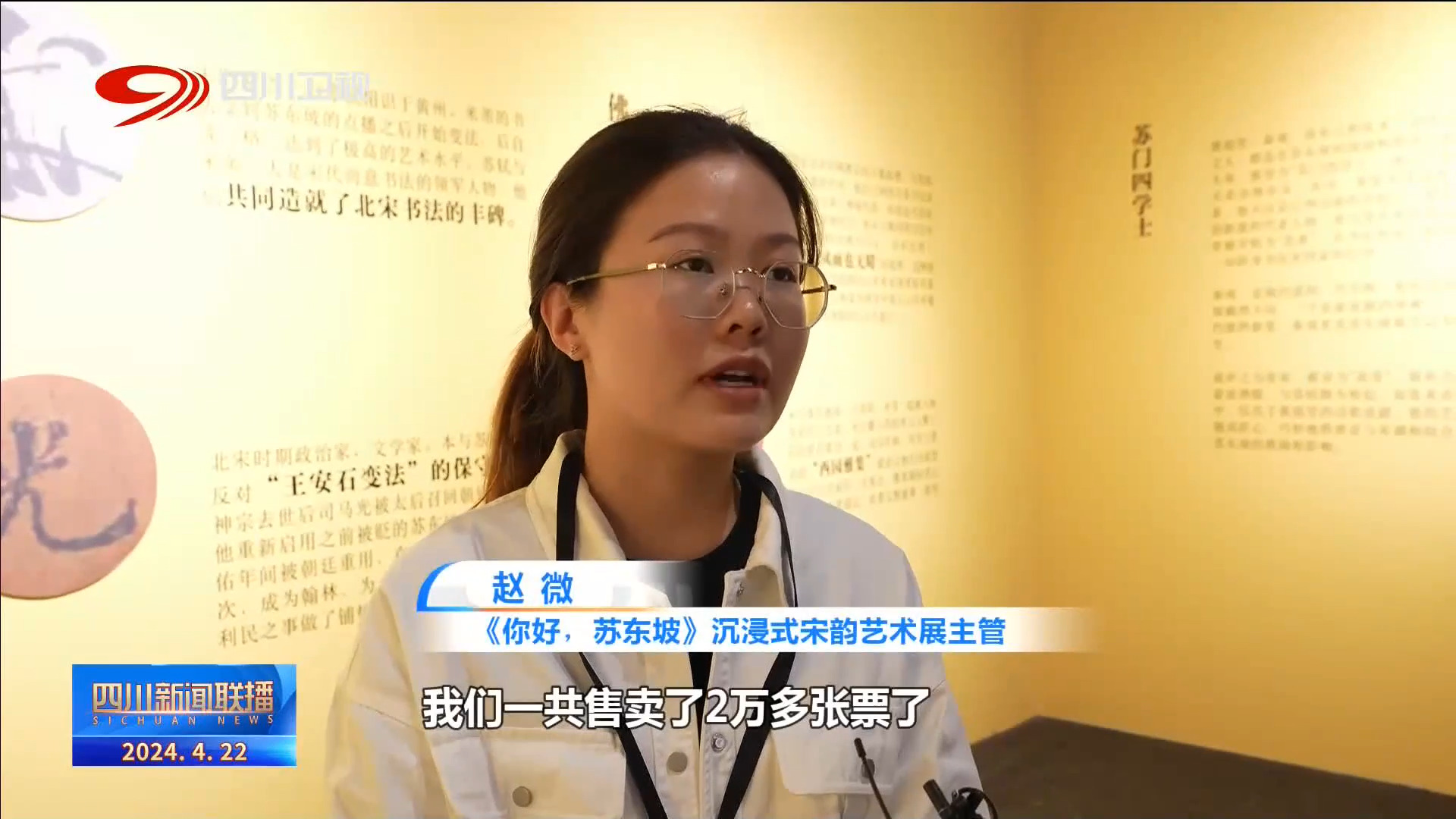 《你好,蘇東坡》沉浸式宋韻藝術(shù)展主管 趙微:開(kāi)業(yè)到現(xiàn)在為止,一共售賣了2萬(wàn)多張票了。(文創(chuàng))大概是8萬(wàn)左右的售賣金額。