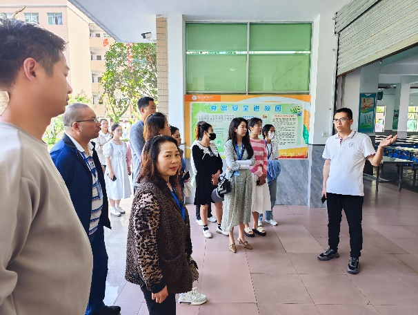 參觀食堂就餐區(qū)。首先,董華章主席向家長們詳細地介紹了學校食品安全管理組織架構、食品安全管理制度、蔬菜肉類從“食材”到“佳肴”的全流程、員工日常管理和培訓以及食堂改擴建規(guī)劃等工作;