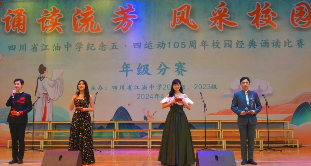 為了進(jìn)一步弘揚(yáng)和傳承中華民族燦爛文化,營(yíng)造積極向上的校園文化氛圍,展現(xiàn)學(xué)子風(fēng)采,4月17日晚,江油中學(xué)高2022級(jí)在學(xué)校體育館舉行了以“聆聽(tīng)時(shí)代跫音,擘畫青春華章”為主題的紀(jì)念五四運(yùn)動(dòng)系列活動(dòng)之“誦讀流芳,風(fēng)采校園”的校園經(jīng)典誦讀比賽年級(jí)分賽活動(dòng)。