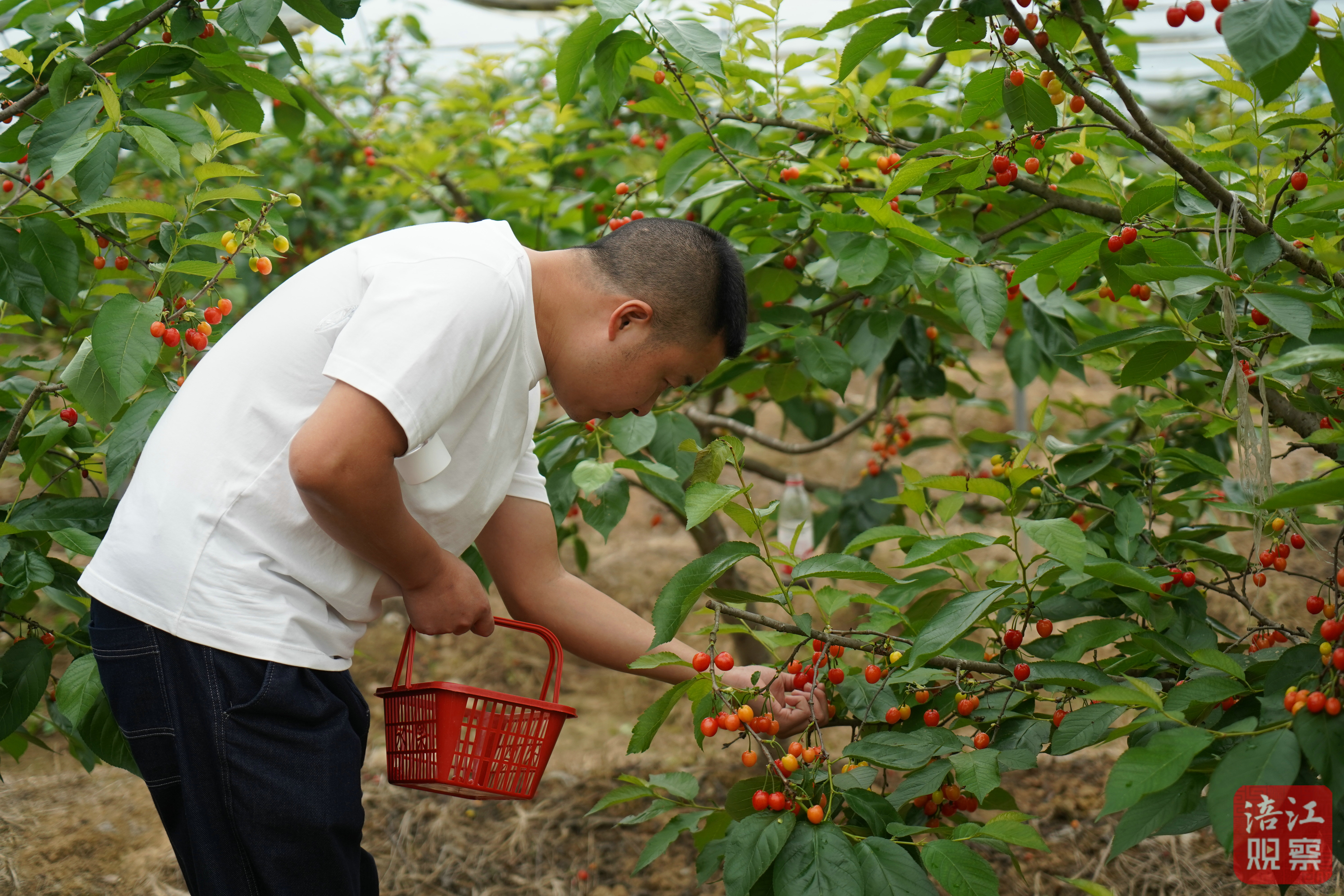 游客們結(jié)伴穿梭于農(nóng)場里,盡享田園采摘的樂趣。“這里的櫻桃很大,汁多肉厚,味道酸酸甜甜的,吃起來口感非常好,準備推薦朋友過來。”游客蔣先生說。
