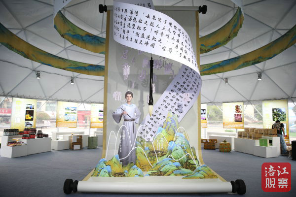 繼續(xù)前行,此次活動的主題縣江油館便呈現(xiàn)在眼前。入館后,中心位置打造了太白立體畫軸創(chuàng)意造型,畫軸以李白詩詞為屏,畫軸前方為立體的奇山異水造型,向杭州市民展示“蜀道太白鄉(xiāng),詩意棲居地”的浪漫江油。同時,集合江油文旅資源、非遺傳承、文創(chuàng)產(chǎn)品、李白文化推廣等板塊內(nèi)容進(jìn)行展示。