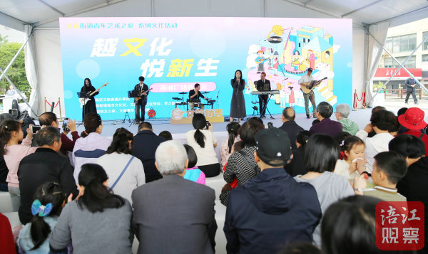 在展演區(qū),杭州市西湖區(qū)文新街道辦事處舉辦的廣場音樂會正在進行中。來自杭州聲之韻青年藝術(shù)團、高校校友之家的演員們,為現(xiàn)場觀眾帶來了一場“青春風(fēng)暴”。