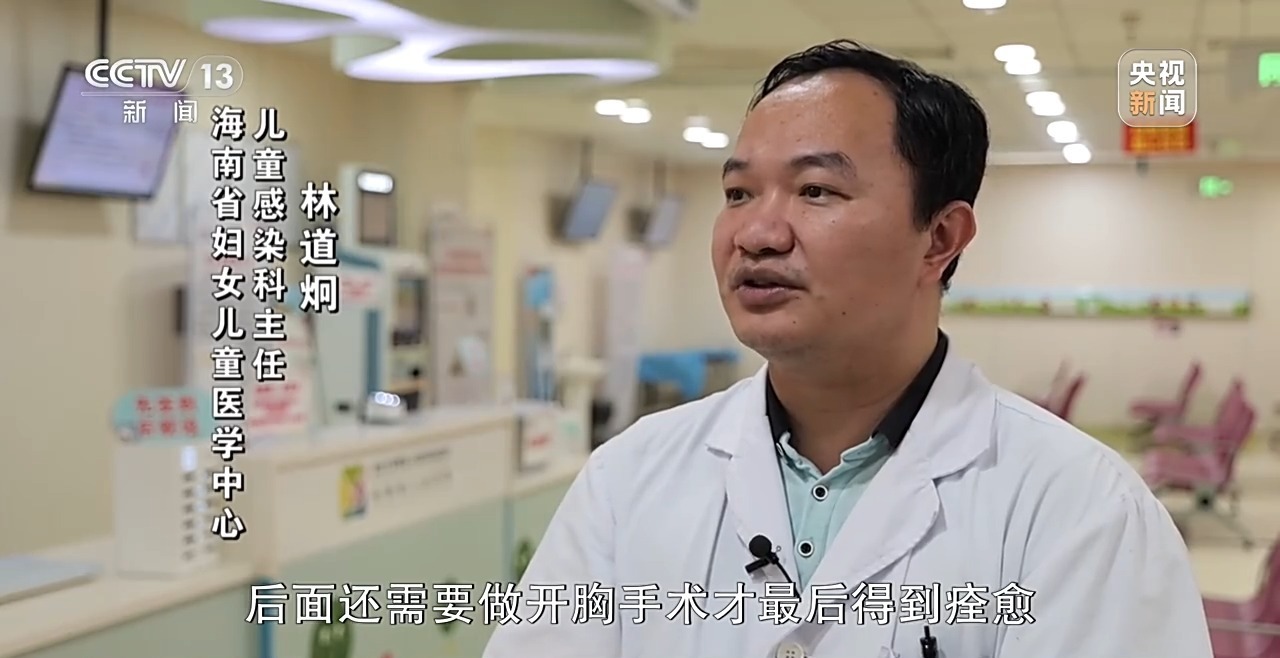 海南省婦女兒童醫(yī)學(xué)中心兒童感染科主任 林道炯:肺炎鏈球菌它不僅可以引起兒童肺炎,還出現(xiàn)腦膜炎、敗血癥等并發(fā)癥。這些疾病往往比較危重,有時(shí)候會(huì)造成孩子不幸身亡,即使能夠救活,有時(shí)候也會(huì)留下一些智力低下、癱瘓、聽力下降等后遺癥。最近我們就接診過兩個(gè)孩子,后面還需要做開胸手術(shù)才最后得到痊愈。