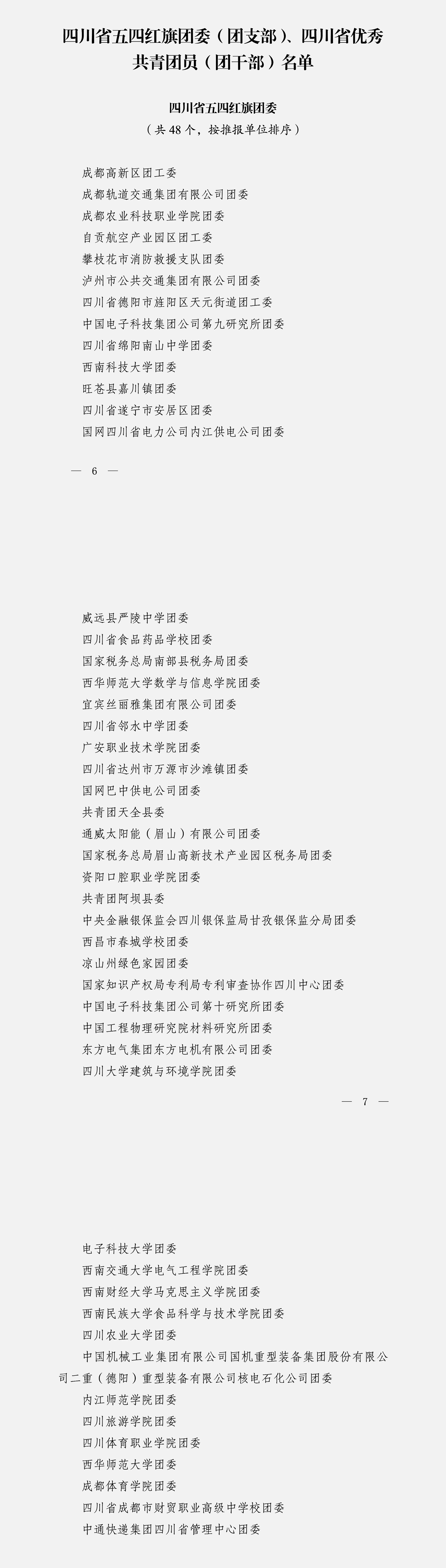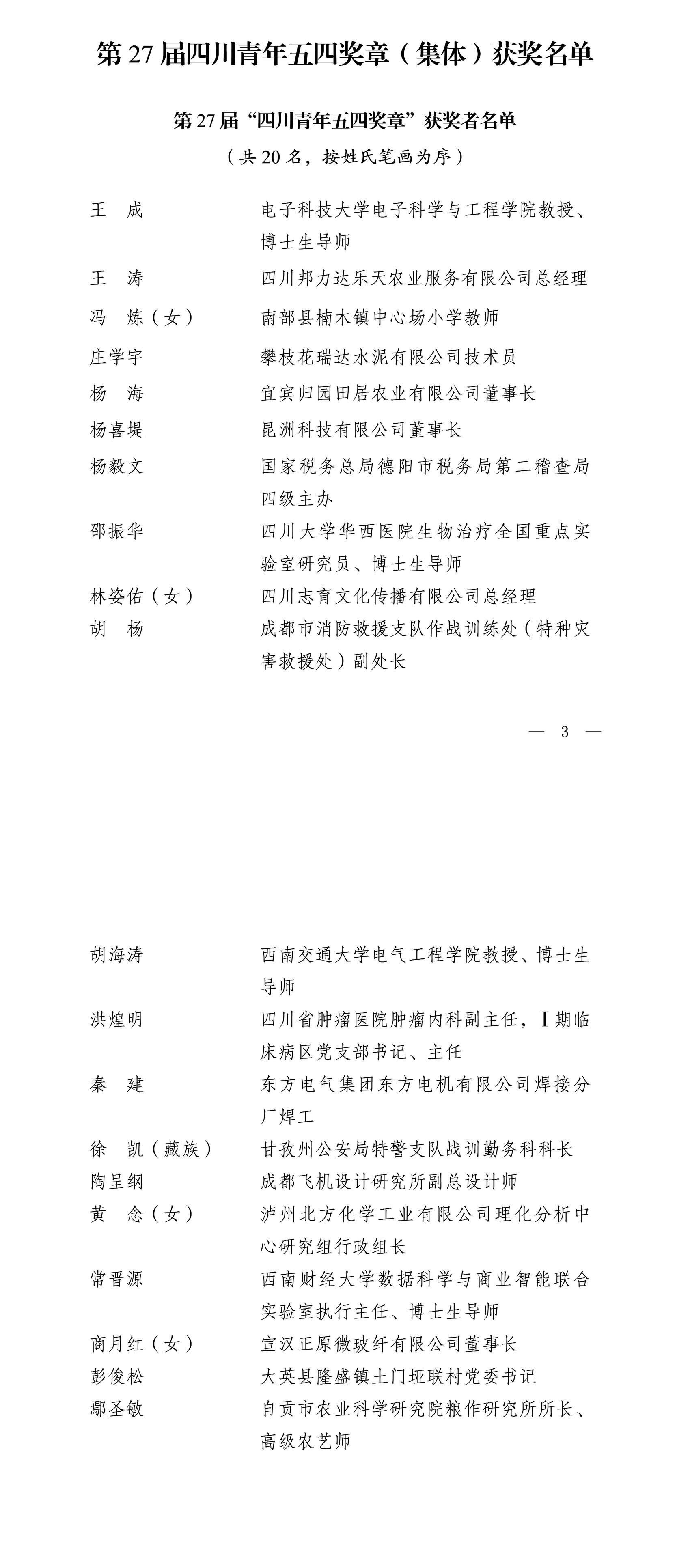 4月29日,記者從共青團(tuán)四川省委獲悉,五四青年節(jié)即將到來之際,為表彰先進(jìn)、樹立典型,共青團(tuán)四川省委、四川省人力資源和社會(huì)保障廳決定,授予四川省綿陽南山中學(xué)團(tuán)委等團(tuán)組織四川省五四紅旗團(tuán)委稱號(hào),授予北川羌族自治縣曲山鎮(zhèn)石椅村團(tuán)支部等團(tuán)組織四川省五四紅旗團(tuán)支部稱號(hào),授予綿陽市涪城區(qū)蒲公英應(yīng)急救援中心城市搜救隊(duì)副隊(duì)長李桂蘭等四川省優(yōu)秀共青團(tuán)員稱號(hào),授予綿陽師范學(xué)院團(tuán)委書記馬嘯等四川省優(yōu)秀共青團(tuán)干部稱號(hào)。