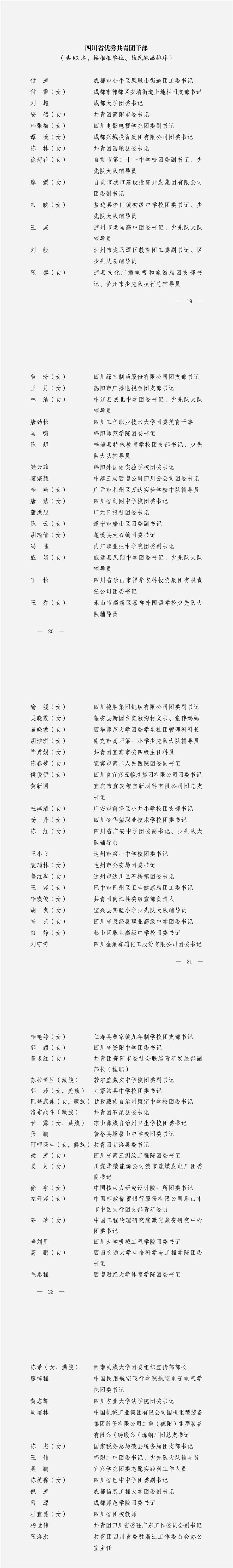 摘要:4月29日,記者從共青團(tuán)四川省委獲悉,五四青年節(jié)即將到來之際,為表彰先進(jìn)、樹立典型,共青團(tuán)四川省委、四川省人力資源和社會(huì)保障廳決定,授予四川省綿陽南山中學(xué)團(tuán)委等團(tuán)組織四川省五四紅旗團(tuán)委稱號(hào),授予北川羌族自治縣曲山鎮(zhèn)石椅村團(tuán)支部等團(tuán)組織四川省五四紅旗團(tuán)支部稱號(hào),授予綿陽市涪城區(qū)蒲公英應(yīng)急救援中心城市搜救隊(duì)副隊(duì)長李桂蘭等四川省優(yōu)秀共青團(tuán)員稱號(hào),授予綿陽師范學(xué)院團(tuán)委書記馬嘯等四川省優(yōu)秀共青團(tuán)干部稱號(hào)。