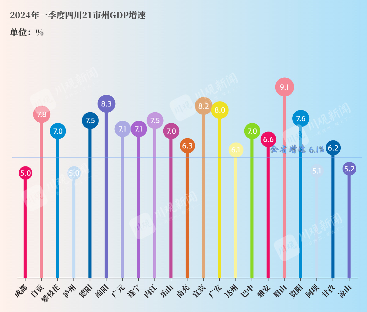川觀新聞?dòng)浾呤崂戆l(fā)現(xiàn),這是眉山近年來首次在市州GDP增速排行榜中“拔得頭籌”。而除眉山外,一季度還有不少市州的發(fā)揮也給人驚喜。