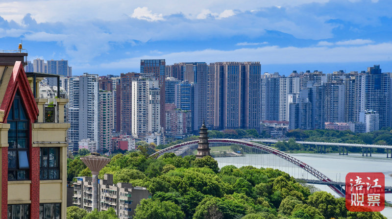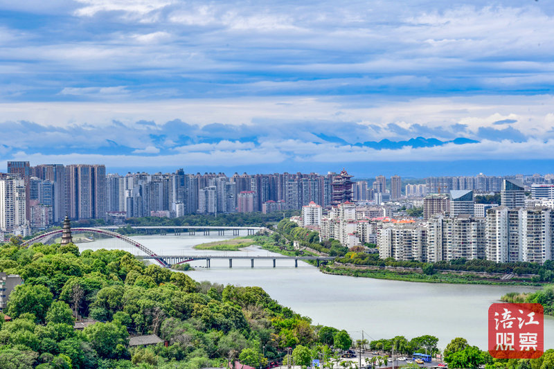 站在經(jīng)開區(qū)高樓上向城區(qū)方向眺望,只見三江兩岸高樓林立,樹木蔥郁、湖水碧綠,遠(yuǎn)處的龍門山脈輪廓清晰可見,美不勝收!