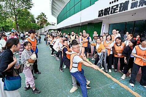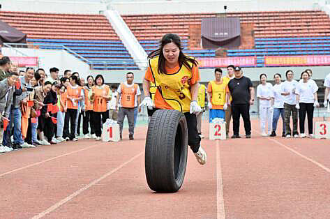 上午8時(shí)許,綿陽南河體育中心的體育場(chǎng)內(nèi)響起陣陣加油聲,來自石塘街道紅星社區(qū)的群眾,正在進(jìn)行定點(diǎn)投籃、50米接力跑、拔河等競(jìng)爭(zhēng)類的比賽。