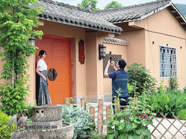 鄉(xiāng)村民居吸引游客打卡留念 (記者周鈺攝)
