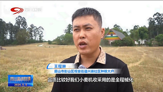 眉山市彭山區(qū)觀音街道興崇社區(qū)種糧大戶 王程琳:(畝)產(chǎn)量預(yù)計在700斤左右,品質(zhì)比較好,我們小麥機收采用的是全程械化,收一畝地一個收割機只需要10多分鐘就能完成。